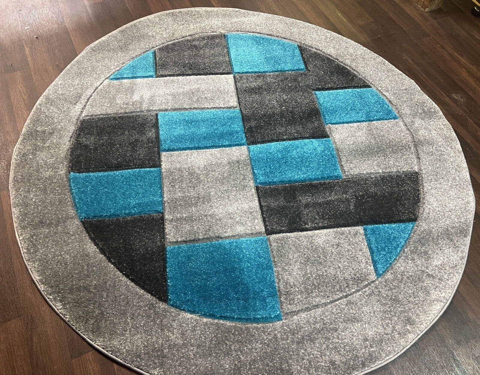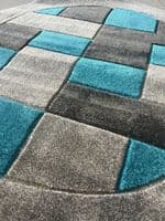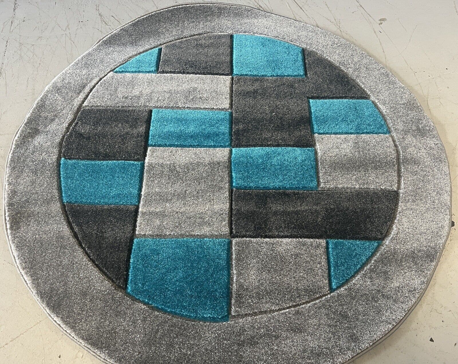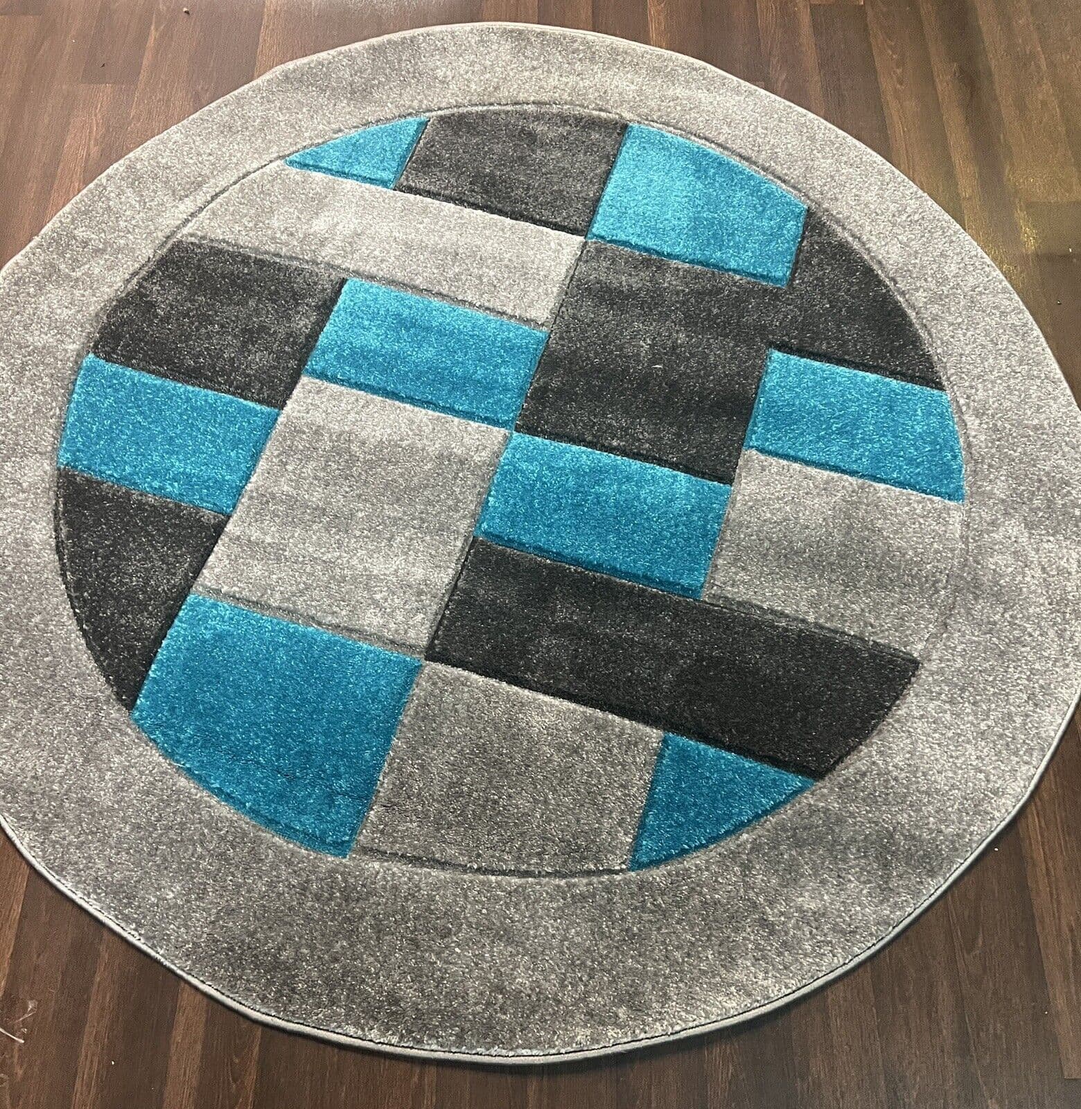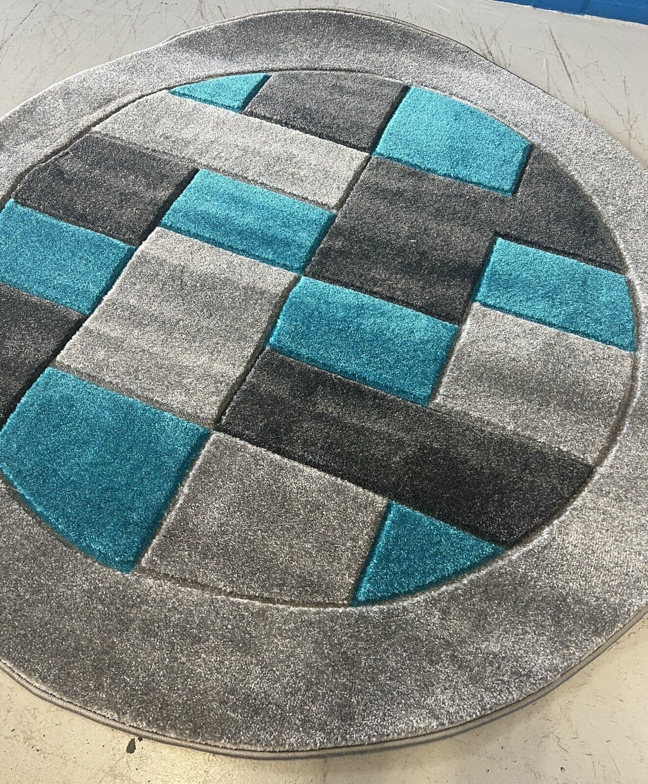 MODERN 140X140CM CIRCLE RUG 4ft6X4ft6 WOVEN HAND CARVED NEW DESIGN SILVER/TEAL X