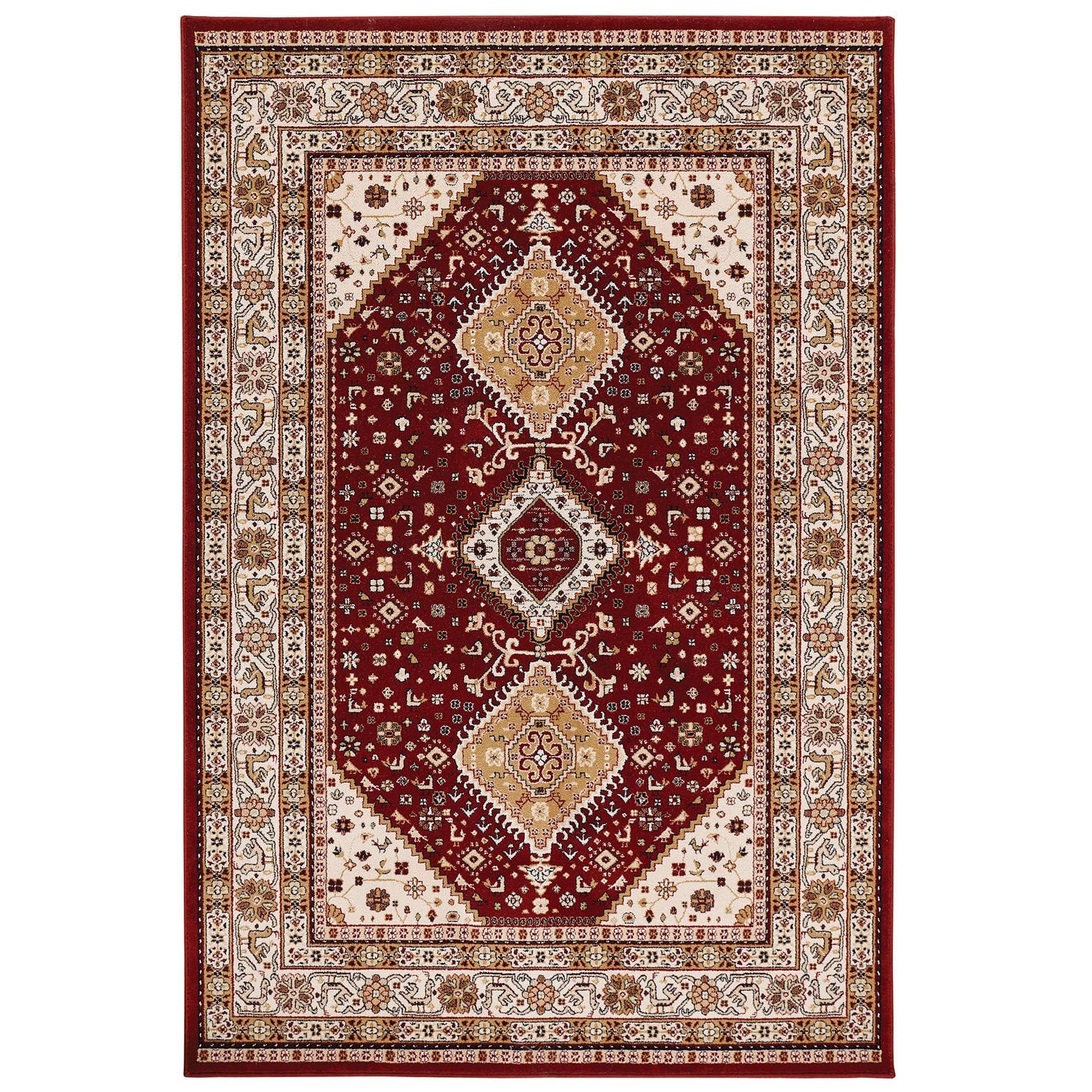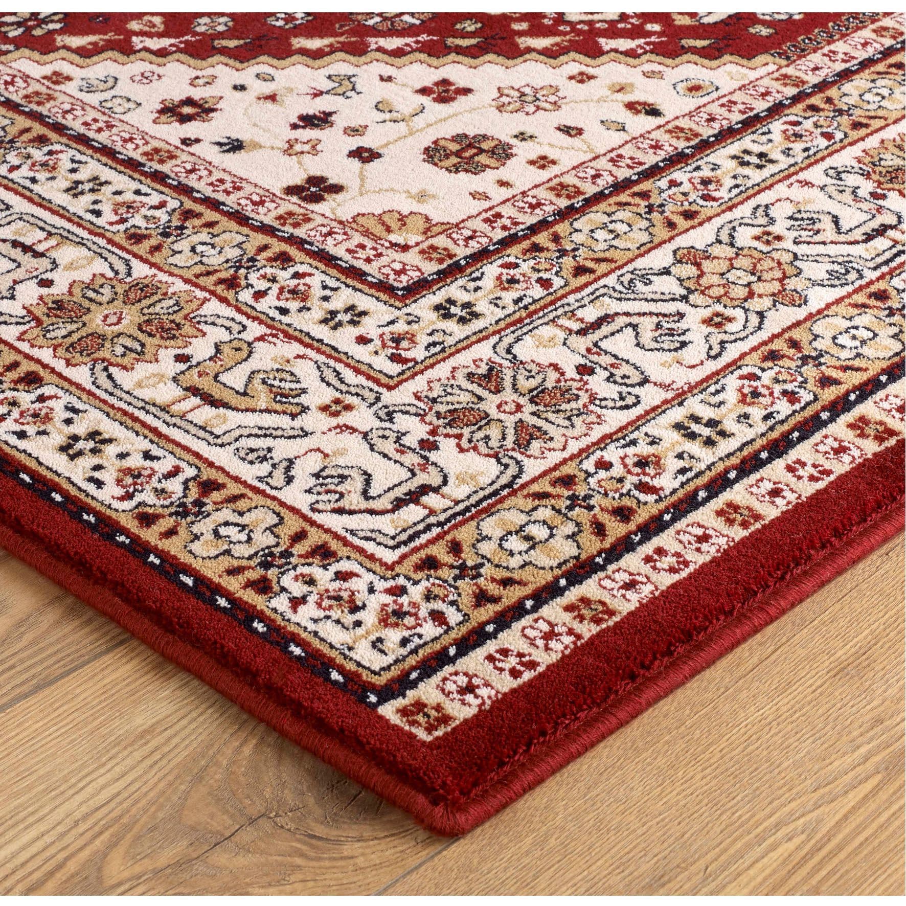 RED/CREAM 100% NEW ZEALAND WOOL MACHINE WOVEN RUG
